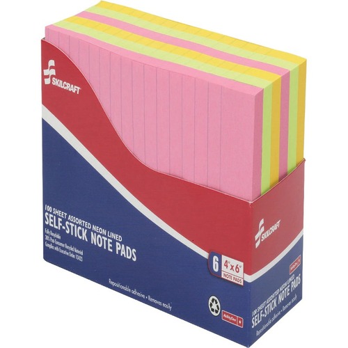Item DescriptionMade using quality 3M materials, self-stick notes stick securely and are repositionable. Hi-Visibility Assorted Neon helps your message stand out. These notepads come in a convenient cabinet pack so your office supply cabinet stays neat and organized. Each pad includes 100 sheets. Self-stick notes are recyclable and made with at least a minimum of 30 percent post-consumer recycled materials. They are produced by Americans who are blind. Purchasing this AbilityOne mandatory source product ensures your compliance with federal procurement regulations. Manufacturer Name: AbilityOne Manufactuer Part Number: NSN3857560 Brand Name: AbilityOne Country of Origin: UNITED STATES OF AMERICA (US) National Stock Number: 7530-01-385-7560 Unit of Measure: PK UNSPSC: 14111530 | UPC: n/a Manufactured by Americans who are blind or visually impaired |